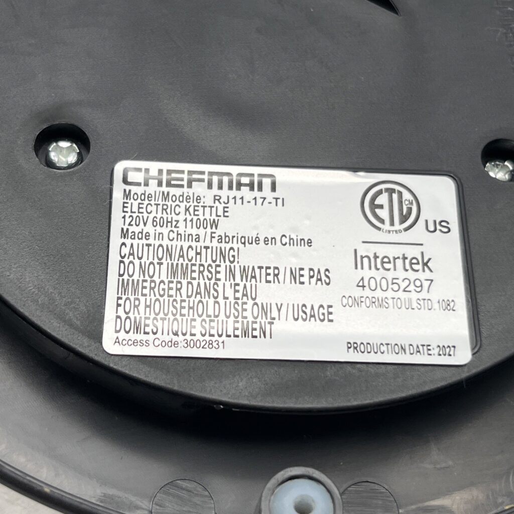 Chefman 1.8 L Electric Kettle Replacement Base RJ11-17-TI