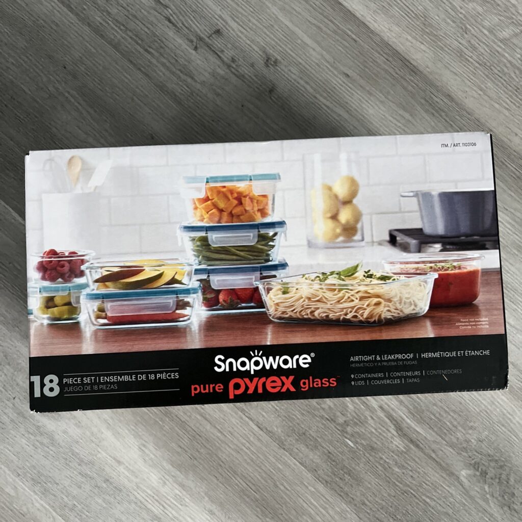 The Snapware Pure Pyrex 18-Piece Glass Food Storage Set is a modern and stylish storage container set designed for the kitchen.