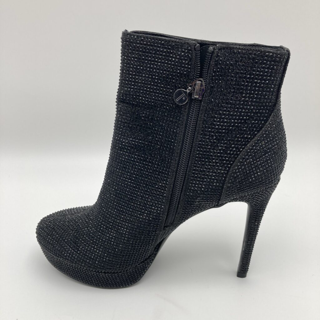 THALIA SODI Womens Black Rhinestone Padded Chiara Round Toe Stiletto Zip-Up Dress Boots 7.5M