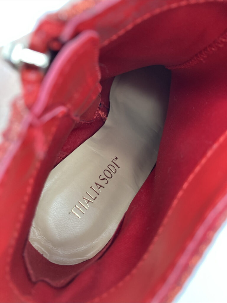 Thalia Sodi Women’s Chiara Platform Dress Booties – Red Lurex Sz 8