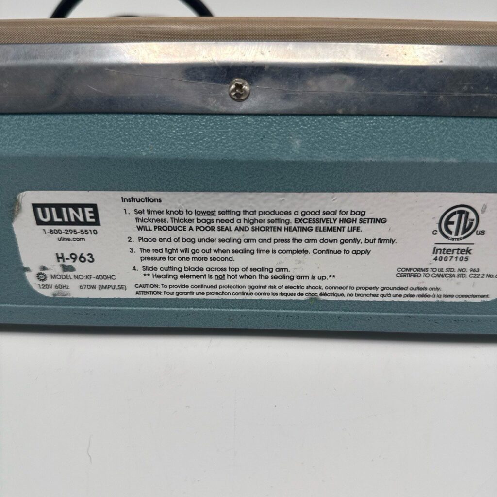ULINE Impulse Sealer 16″ Tabletop Teal Light Blue with Cutter Bag Sealer H-963