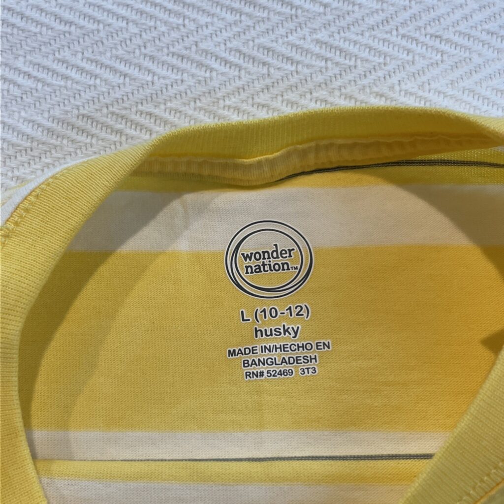 Wonder Nation Boys Short Sleeve Striped Tee – Yellow/White – L(10-12)Husky – NWT